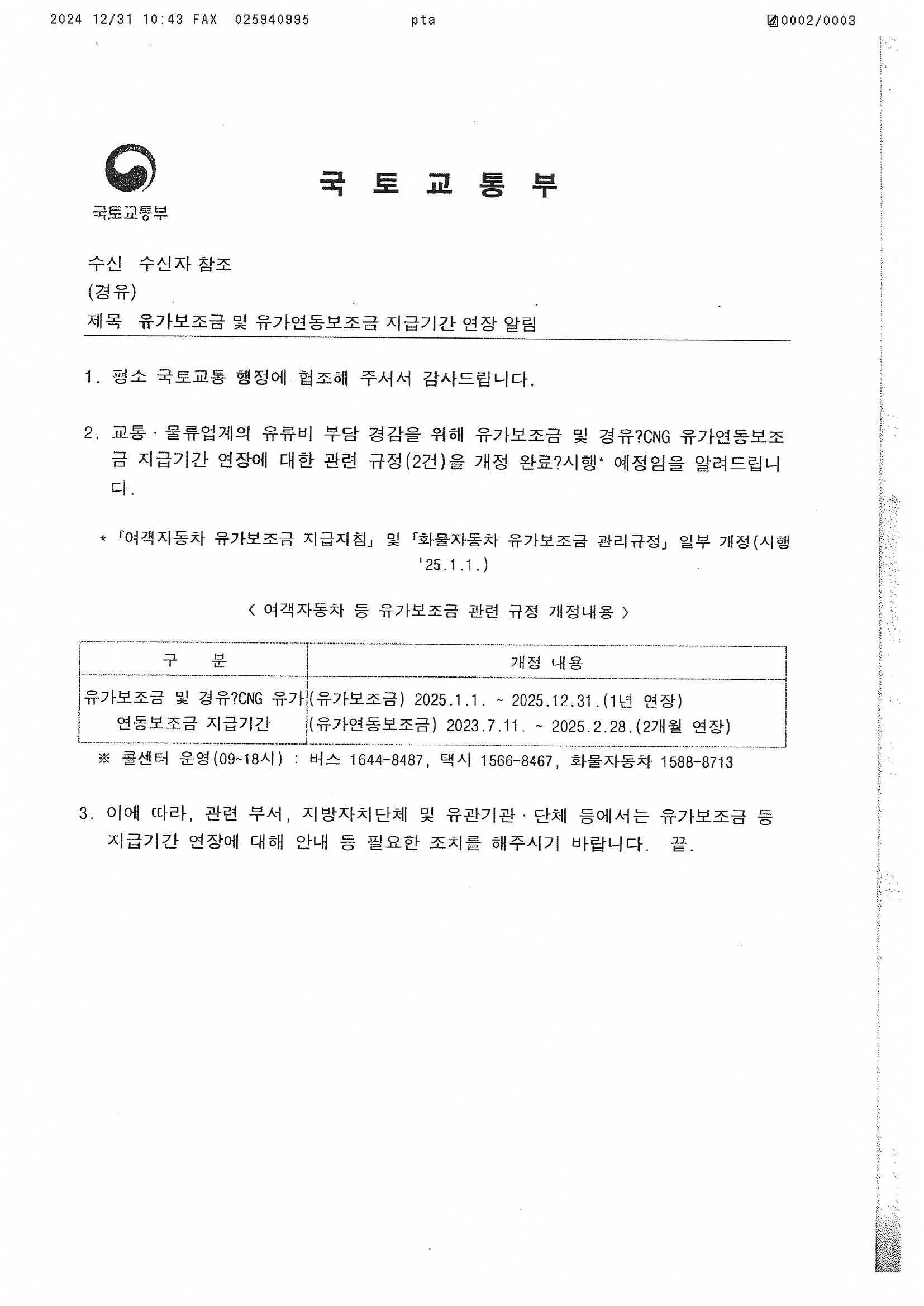 유가보조금 및 유가연동 보조금 지급기간 연장 안내
