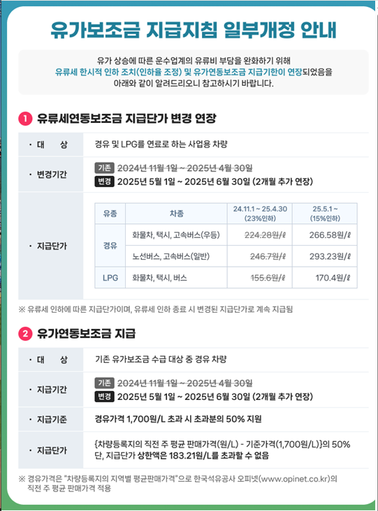 유가보조금 지급지침 개정 안내