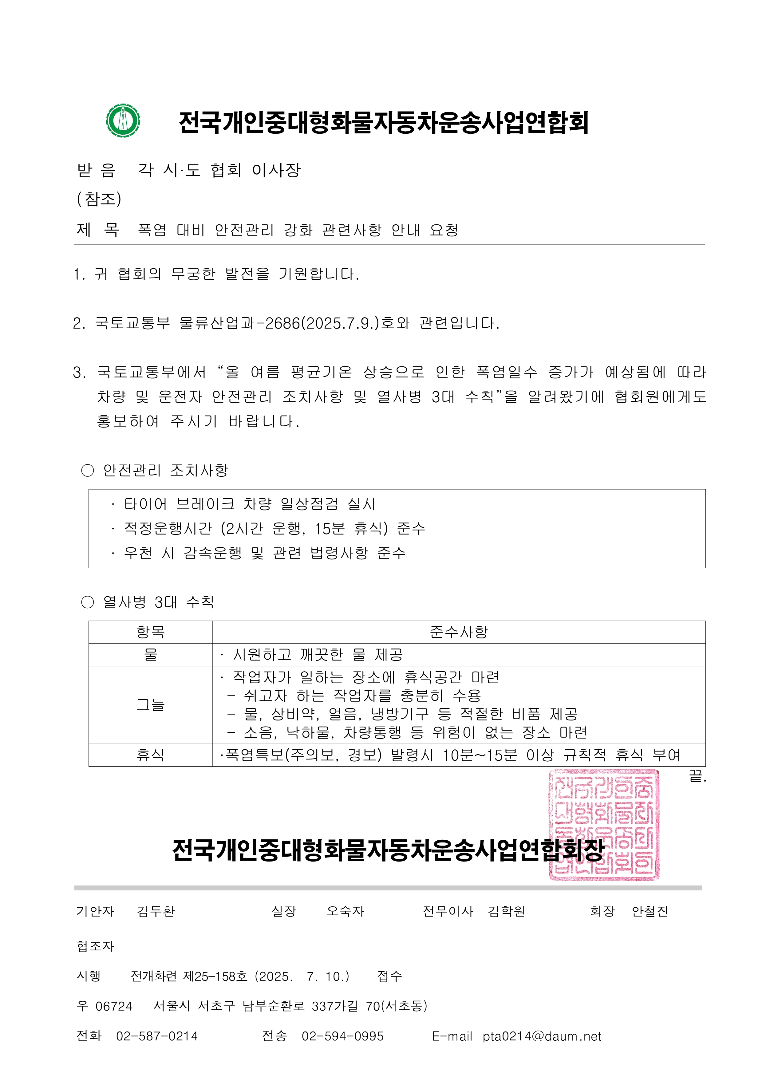 폭염 대비 화물자동차 및 운전자 안전관리 조치 사항 안내