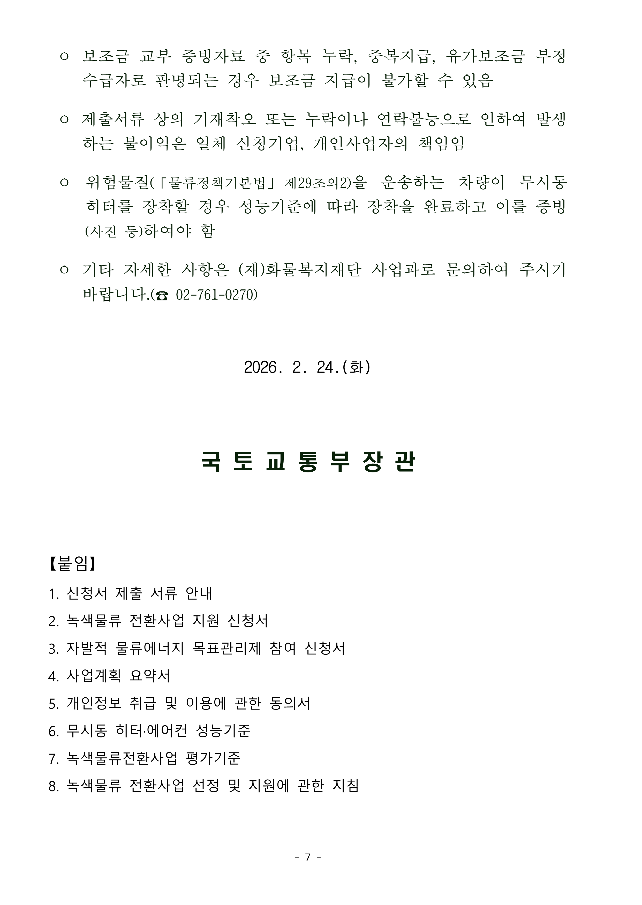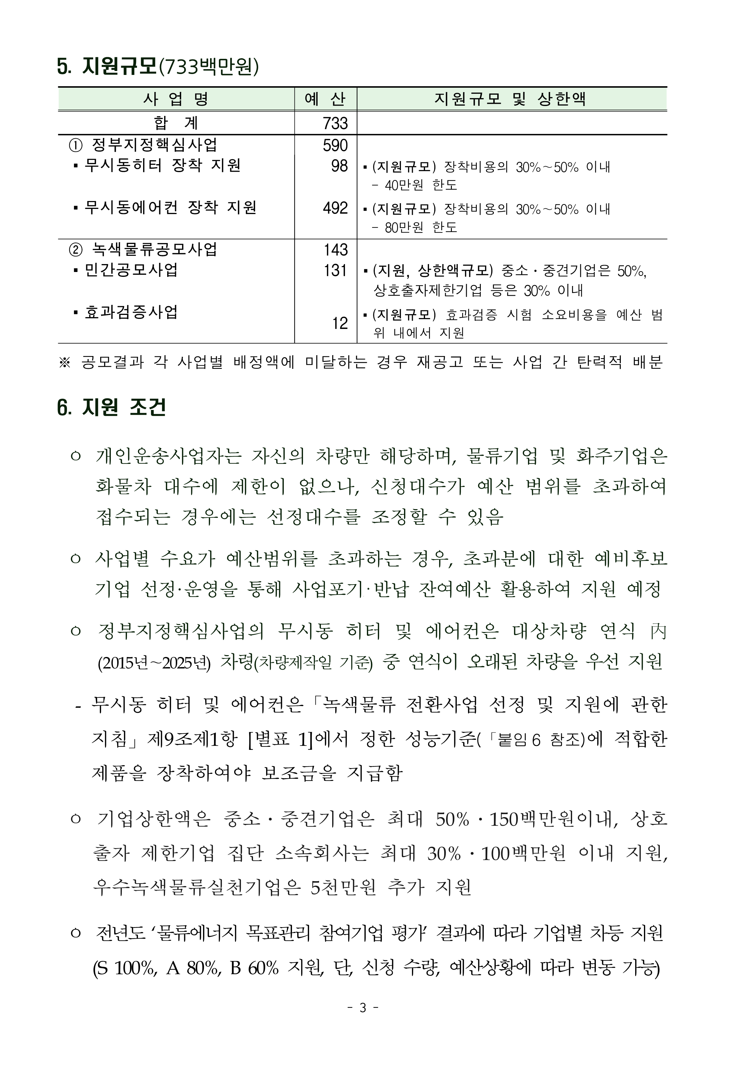 2026년 녹색물류전환(무시동 히터, 무시동 에어컨)사업 모집 공고