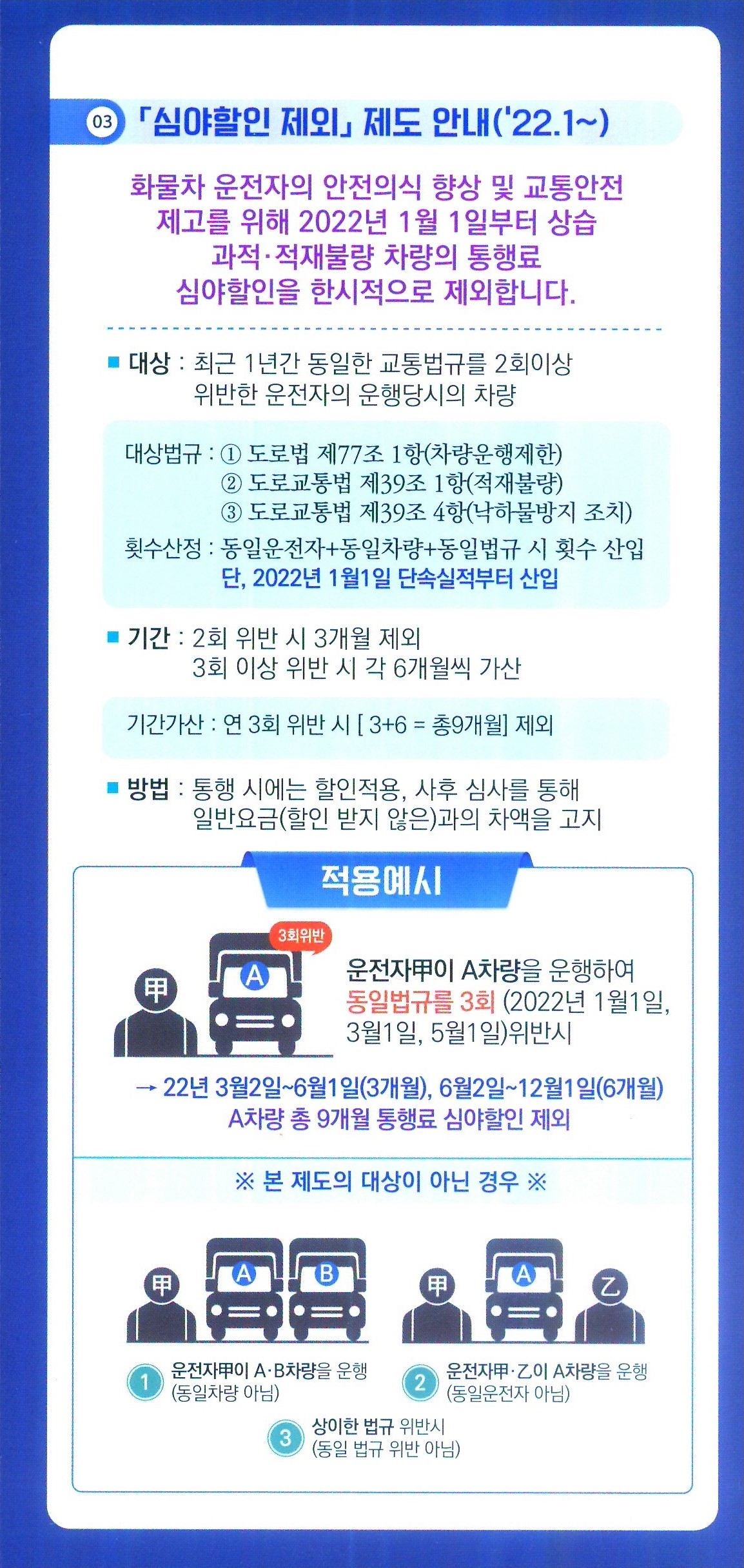 상습 과적·적재불량 화물차 고속도로 통행료 심야할인 제외 안내