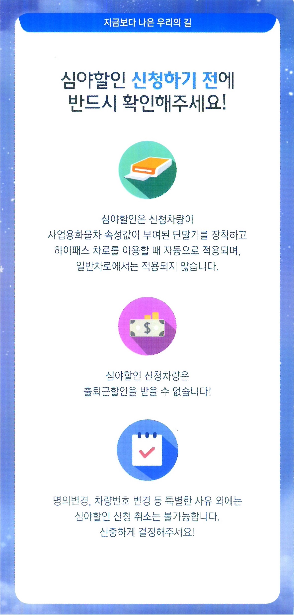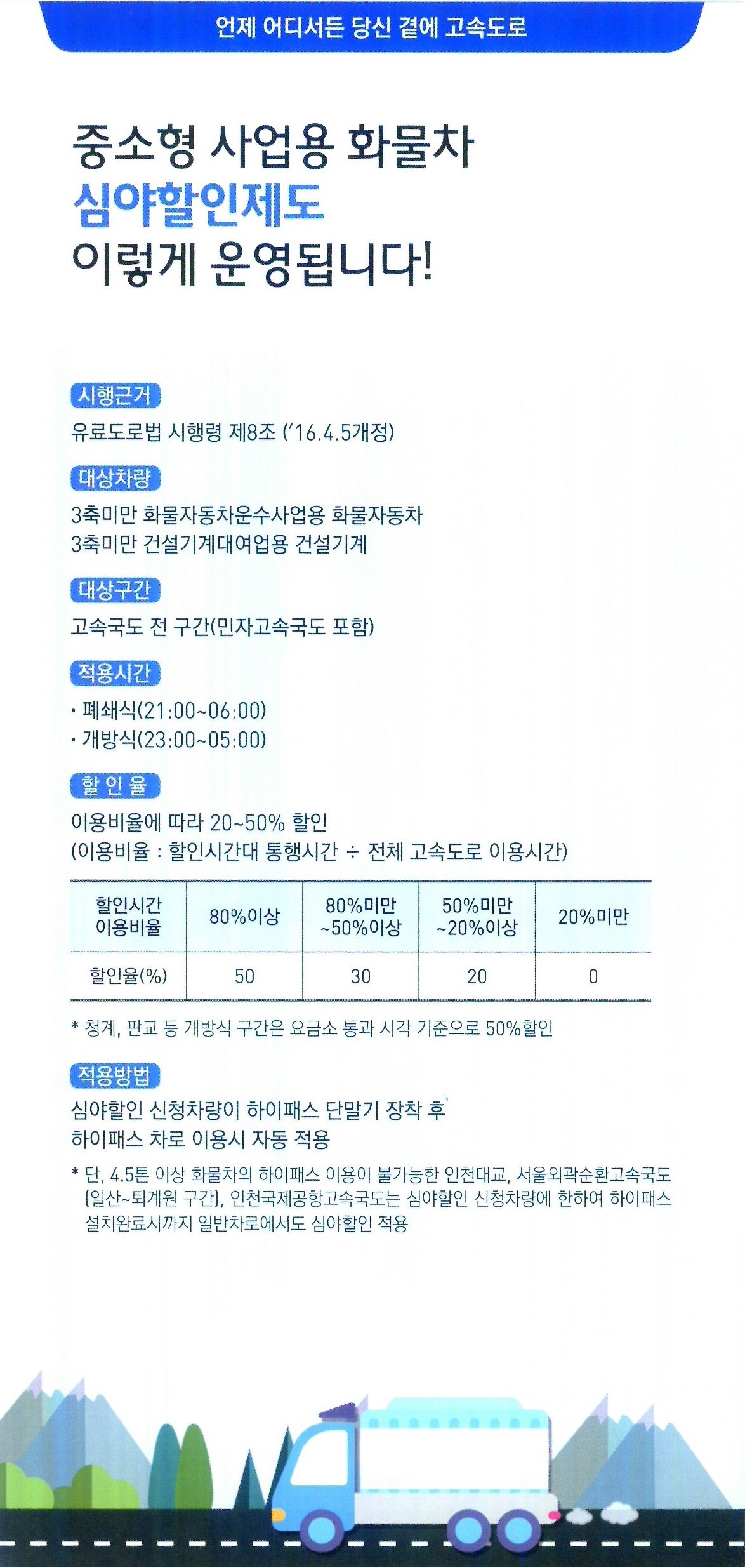 중소형 사업용 화물차 심야할인제도 안내