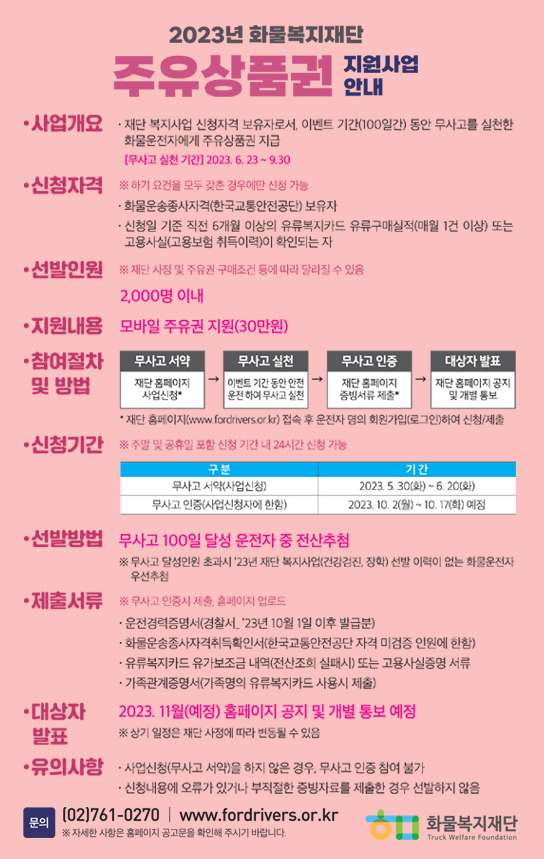 2023년 화물복지재단 주유상품권 지원사업 안내