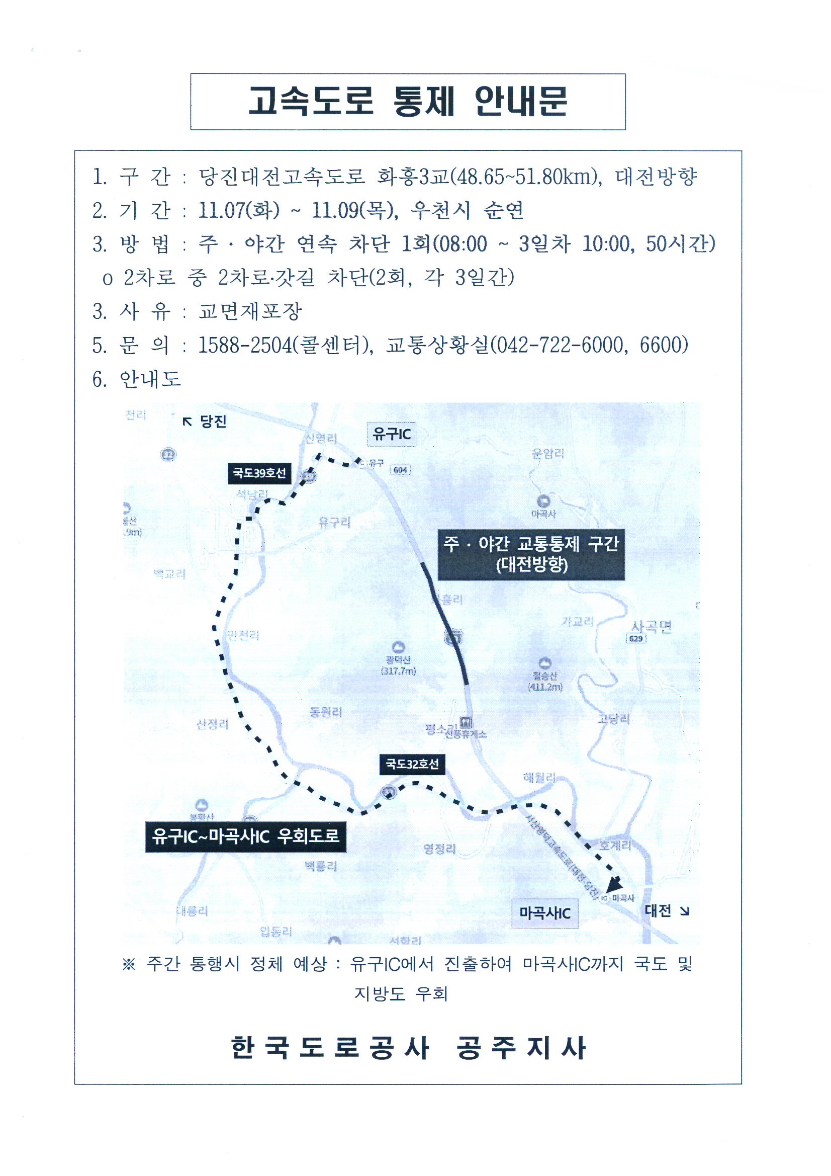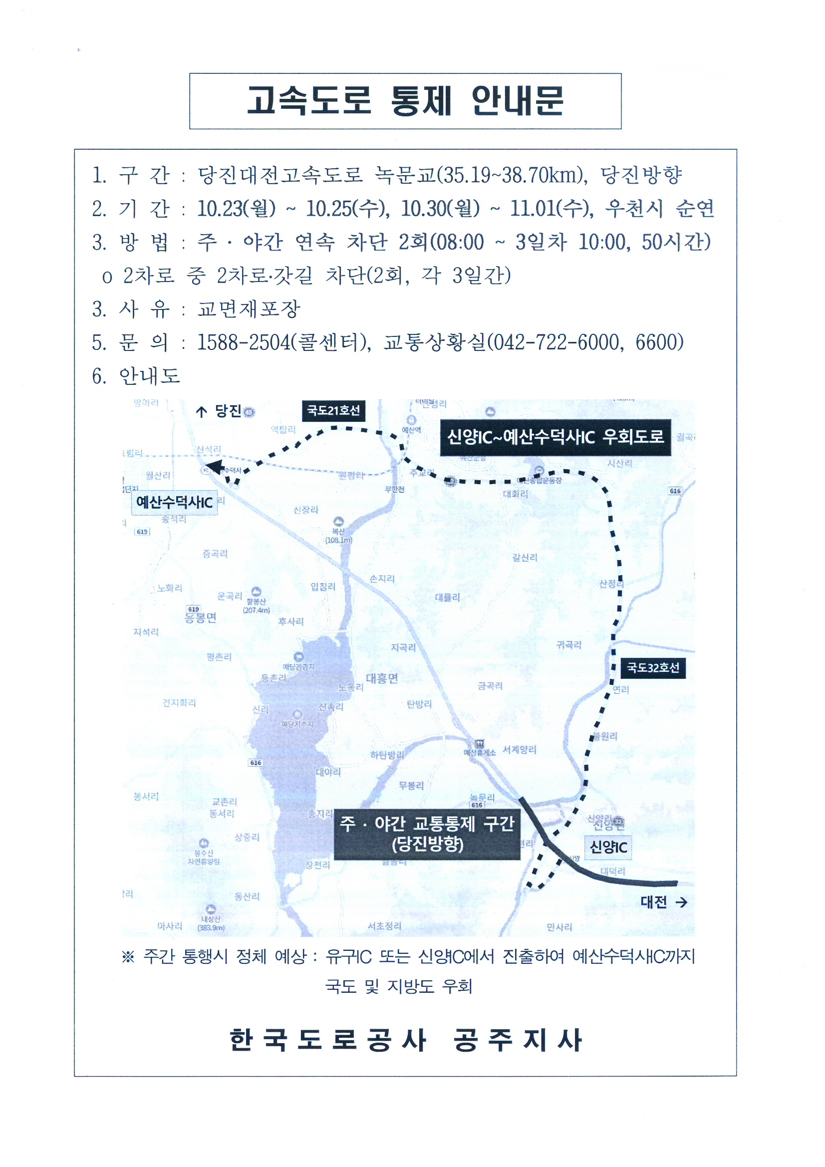 대전당진고속도로 주 야간 교통통제 안내