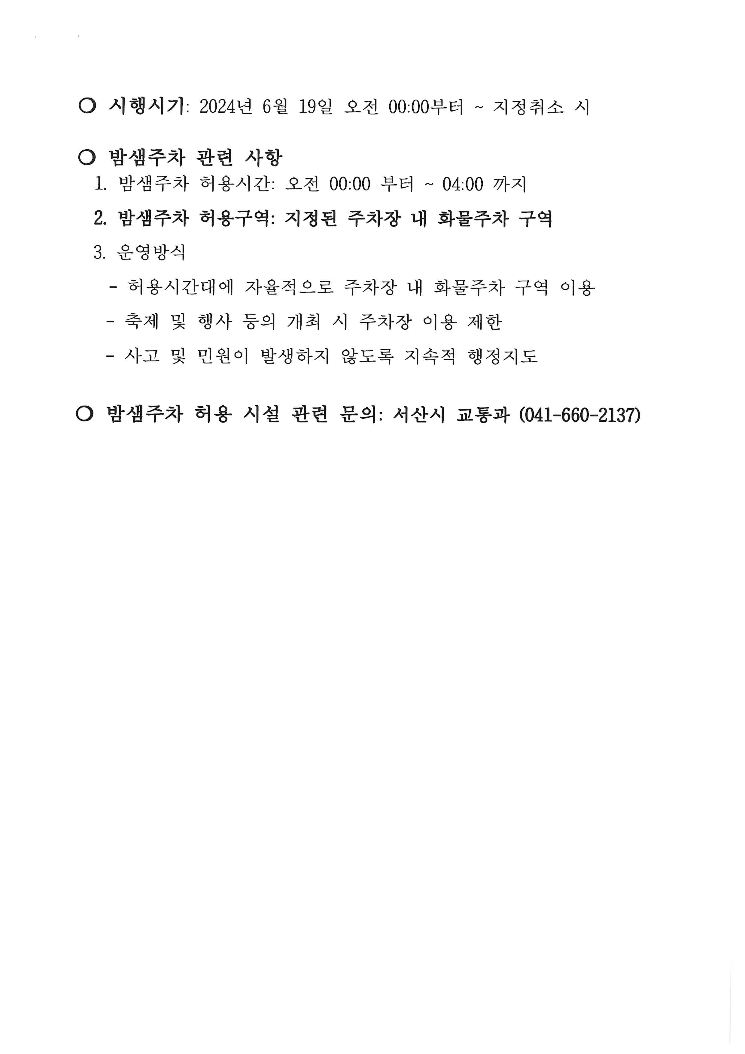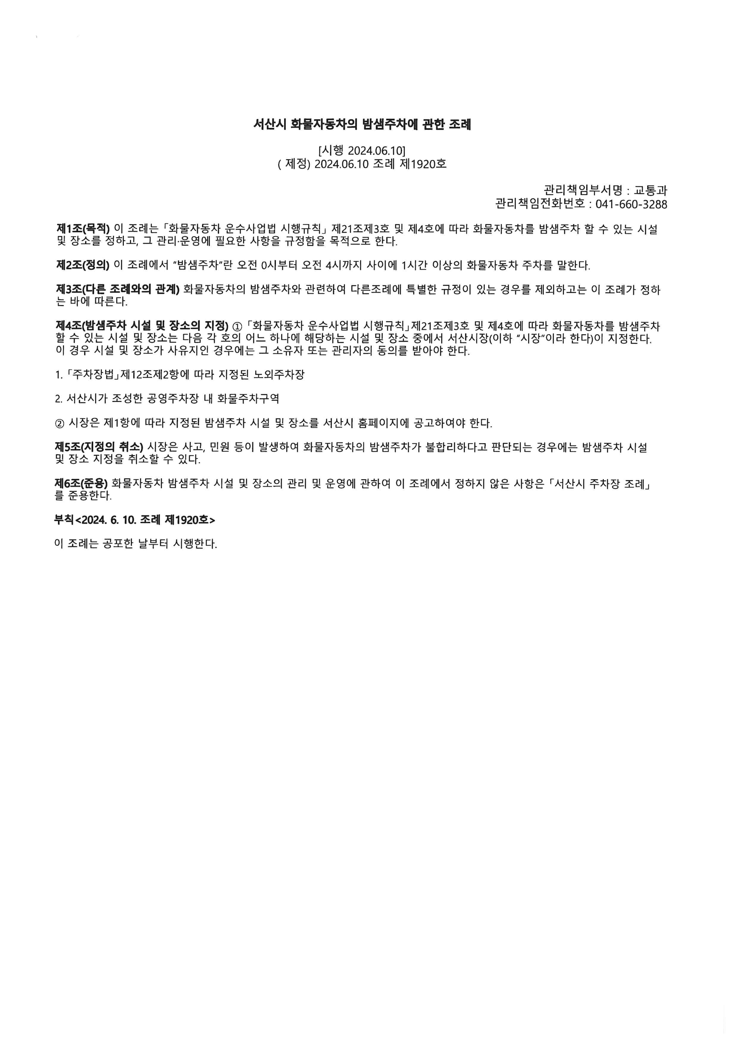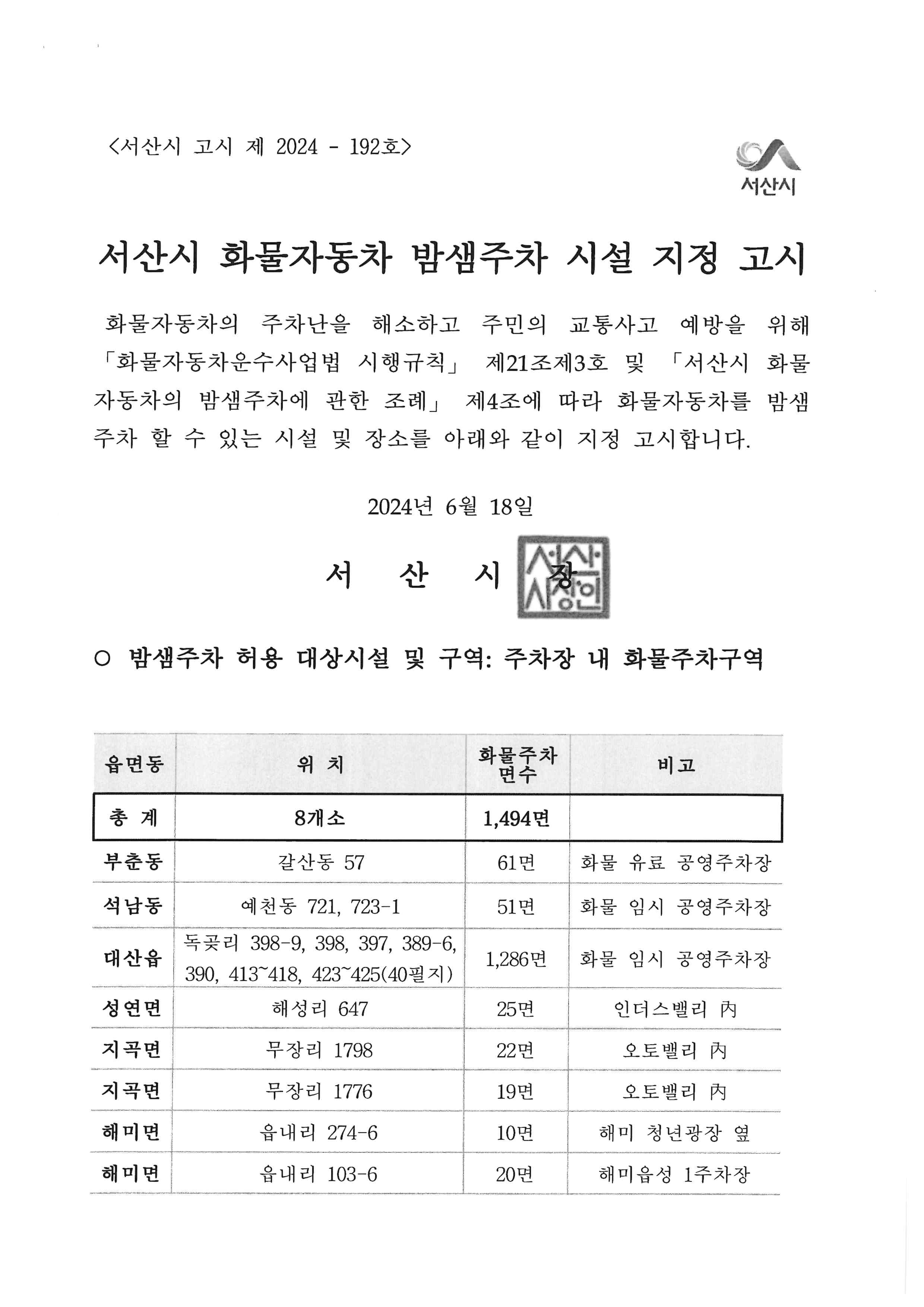 서산시 화물자동차 밤샘주차 시설 지정 고시 안내