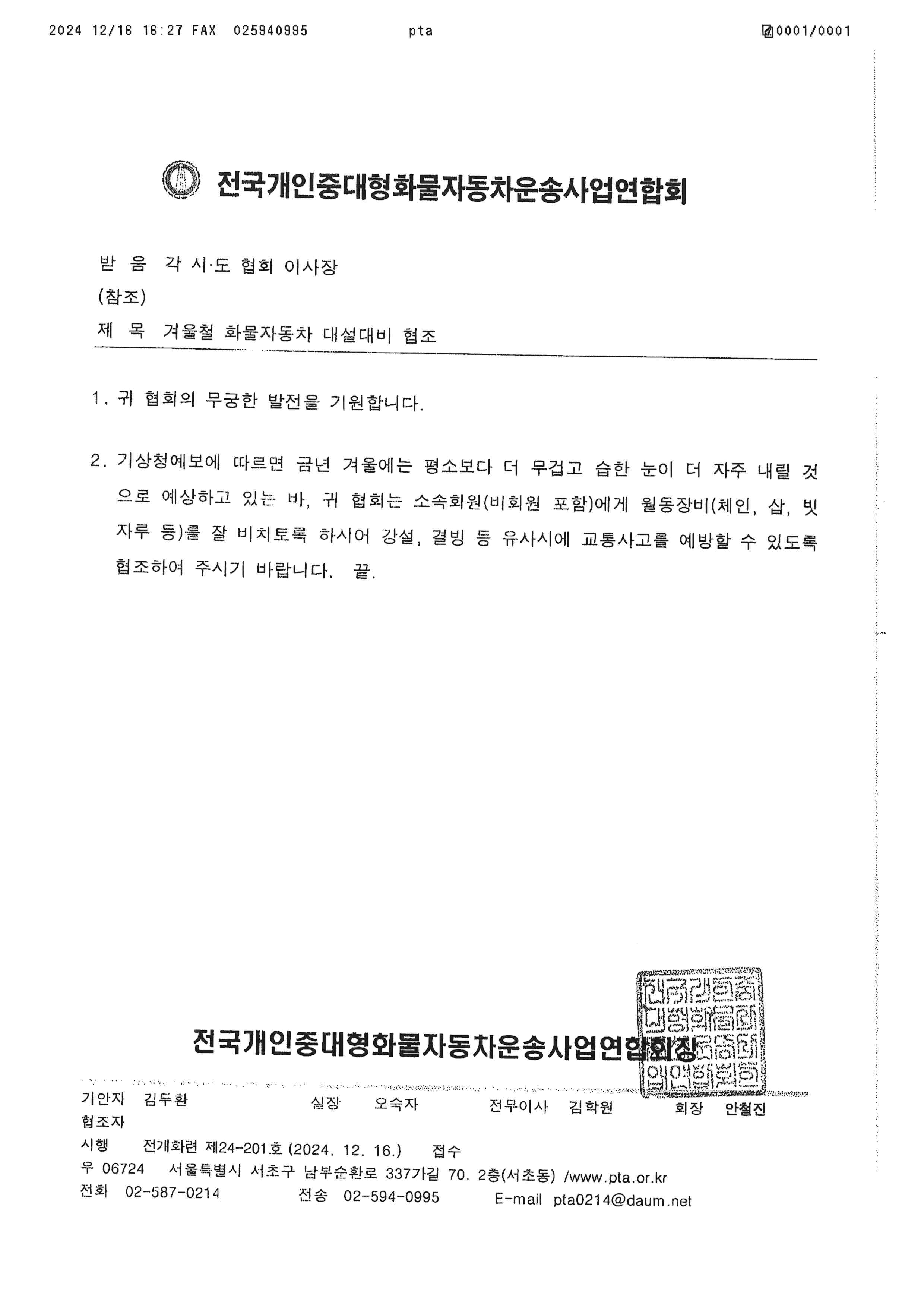겨울철 화물자동차 대설 대비 예방