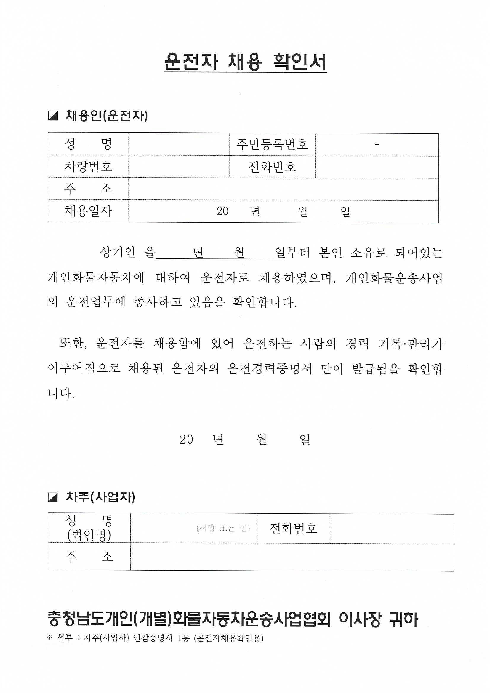 대리 운전자 채용 확인서